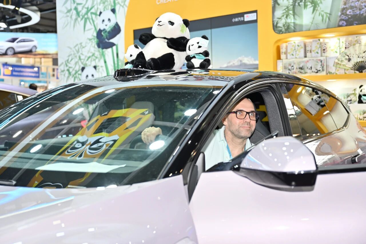 2025年10月16日,第138屆廣交會展出的新能源汽車吸引境外采購商參觀體驗。中新社記者 陳楚紅 攝