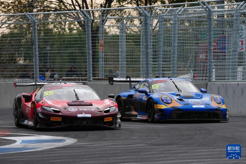 10月18日,勝地-和諧車隊中國車手張亞琦/葉一飛(左)和魅影環球車隊中國車手李超(中國)/方駿宇(中國香港)駕駛賽車在亞洲系列賽預排位賽中。