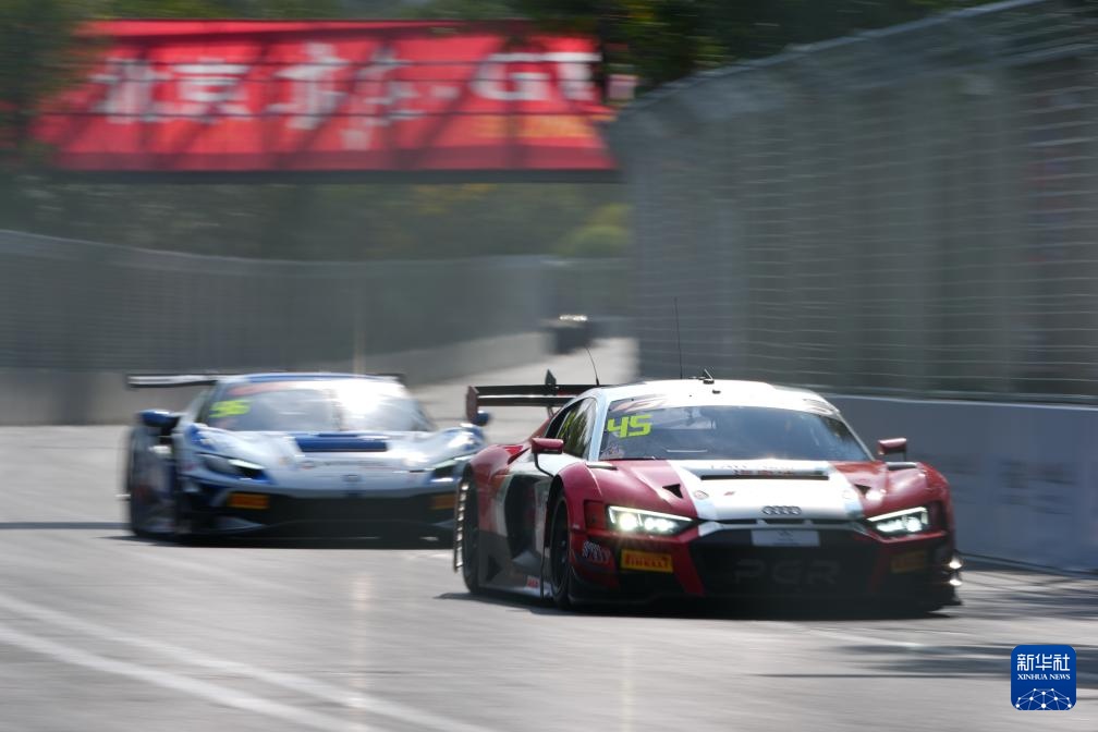 10月18日,一汽奧迪運動亞洲-魅影車隊中國車手程叢夫/余快(前)駕駛賽車在亞洲系列賽預排位賽中。
