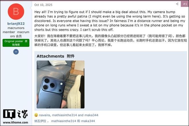 綜合多位用戶的描述,褪色問題似乎存在統一的規律。具體表現為,顏色首先從凸起的相機島區域開始變淡,然后逐漸擴散至整個鋁合金材質的機身邊框。值得注意的是,機身背部的中央啞光玻璃面板并未受到影響,與褪色后的金屬部分形成了鮮明對比。