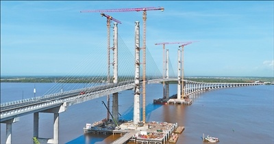 在圭亞那首都喬治敦西部,德梅拉拉河奔涌流向大西洋。1.8公里寬的河面上,一座鋼筋混凝土斜拉橋凌空飛架,成為城市的新地標(biāo)。這是由中國鐵建國際集團(tuán)有限公司(以下簡稱“鐵建國際”)承建的新德梅拉拉河大橋(見圖,胡自含攝)。圭亞那總統(tǒng)阿里在日前舉行的通車儀式上表示,大橋是商業(yè)、工業(yè)和民眾生活的“生命線”,它將顯著提升運力,緩解交通壓力。大橋的正式通車標(biāo)志著圭亞那一系列基礎(chǔ)設(shè)施變革的開端。