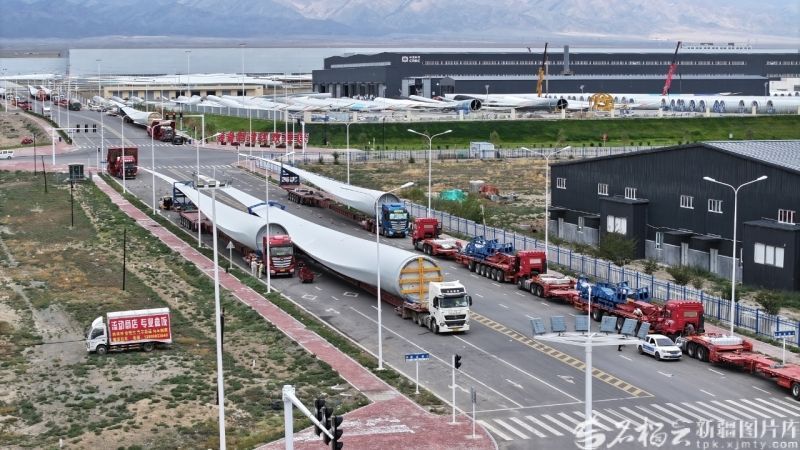 9月5日,在巴里坤哈薩克自治縣大兆瓦智能風電裝備制造產業園內,剛剛生產下線的風電設備零部件被運往各地。郭子毅 攝