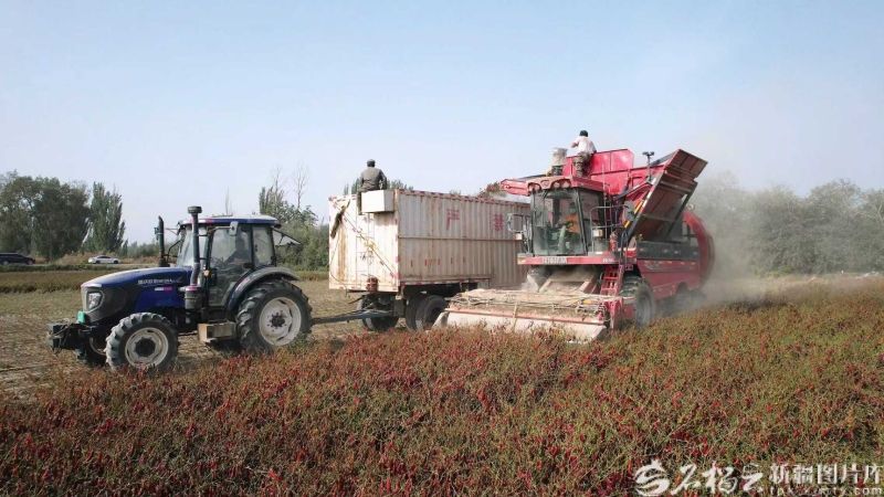 9月3日,新疆新研牧神科技有限公司自走式辣椒收獲機在焉耆回族自治縣進行辣椒收獲作業。周敘杰 攝