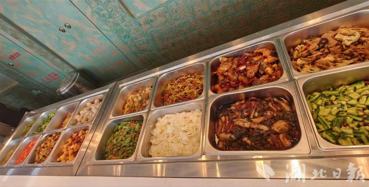 每月17日的湖北省博物館,承包了游客、市民的白天和夜晚。在漢陽一家私企上班的王女士,下班后約著朋友來體驗(yàn)重磅上新的“湖博食堂”。琳瑯滿目的菜品、自助稱重模式,主打親民牌又兼具文化味,一行人對(duì)這家藏在網(wǎng)紅博物館里的食堂贊不絕口。