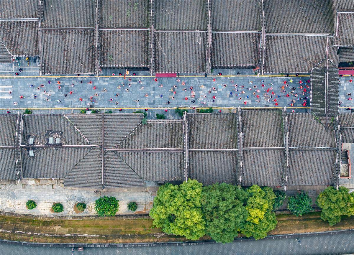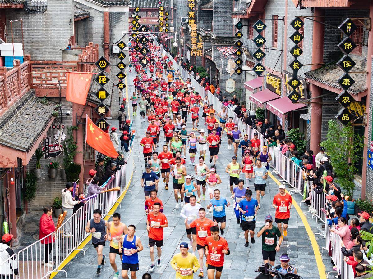10月19日,襄陽馬拉松選手們從襄陽古城里跑過。市民在賽道旁為選手們加油。(湖北日報全媒記者 柯皓 攝)