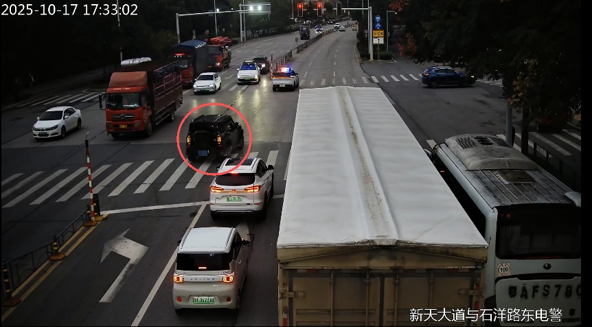 警情就是命令!大隊立即啟動應急救援預案。民警劉國偉第一時間與李先生取得聯系,確認車輛位置和具體情況。沒有絲毫耽擱,他與輔警許暢、張貝立即駕駛警車,拉響警笛,火速前往預定地點接應。17時20分,在新天大道,警車與求助車輛成功會合。