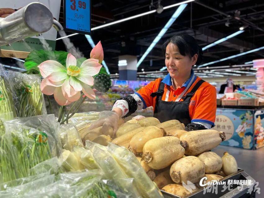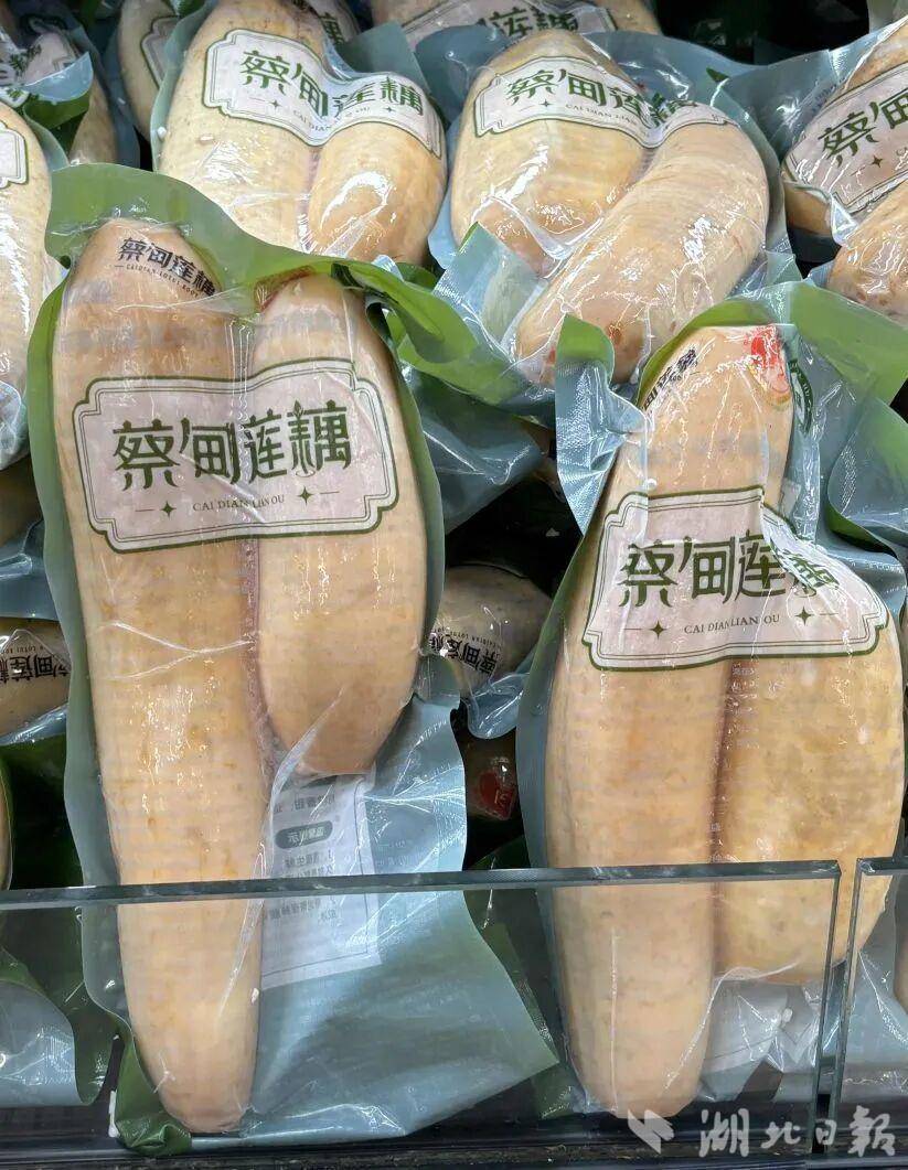 在中百超市,貨架上蓮藕的形態更為多樣,既有新鮮白凈的藕段,也有真空包裝的“蔡甸蓮藕”,還有開蓋即食的罐裝藕湯,為市民提供了多樣化選擇。“蔡甸蓮藕口感粉糯清甜,買的人特別多。”超市工作人員表示,近期蓮藕銷量持續走高。