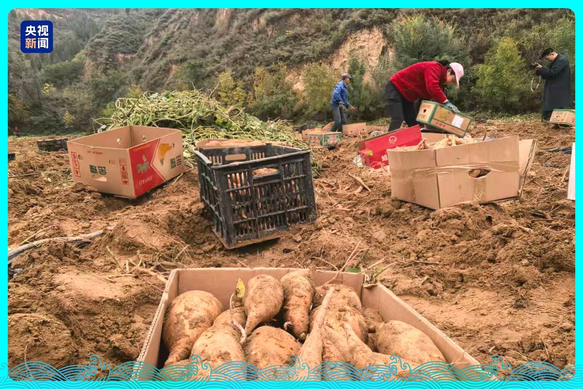 記者在綏德辛店溝水土保持示范園看到,各式各樣的瓜果蔬菜正處于試驗階段,綠意盈盈,長勢喜人。辛店溝所產紅薯無須、甘甜、色質好,當地護住了山河“清秀”,也給村民帶來了紅火的日子。記者在地勢相對平坦的“一道防線”看到,當地種植的紅薯正裝箱銷往全國。