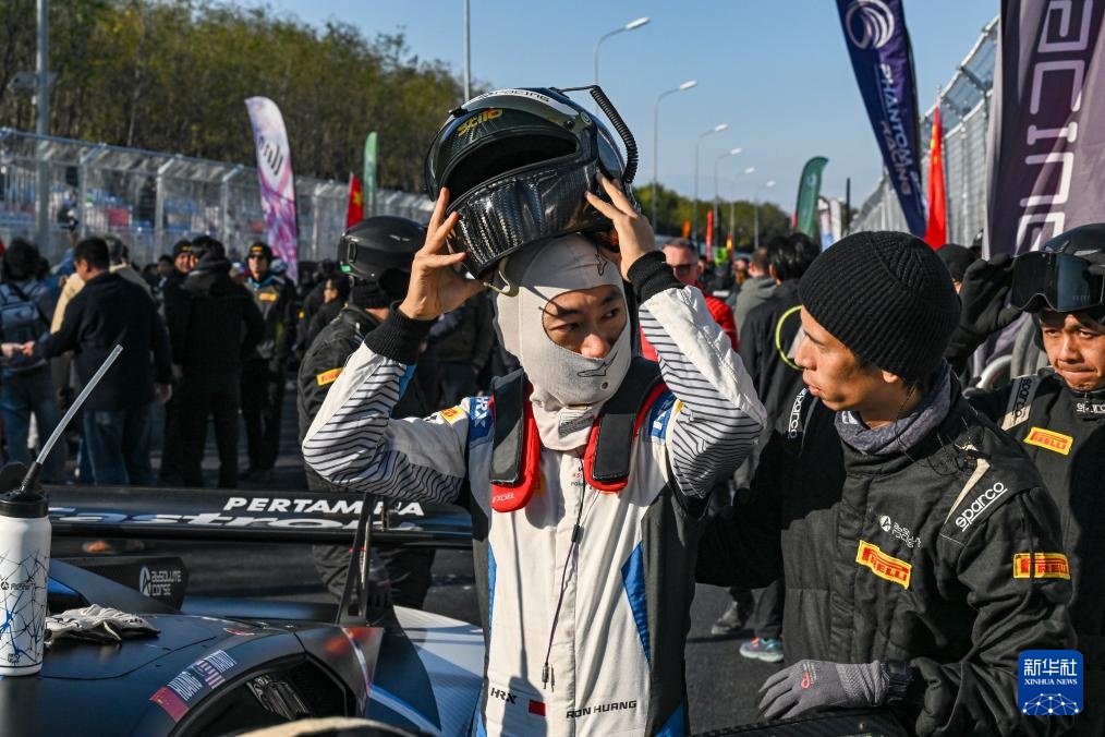 10月19日,絕對車隊首發中國車手黃若涵(左)在比賽前。