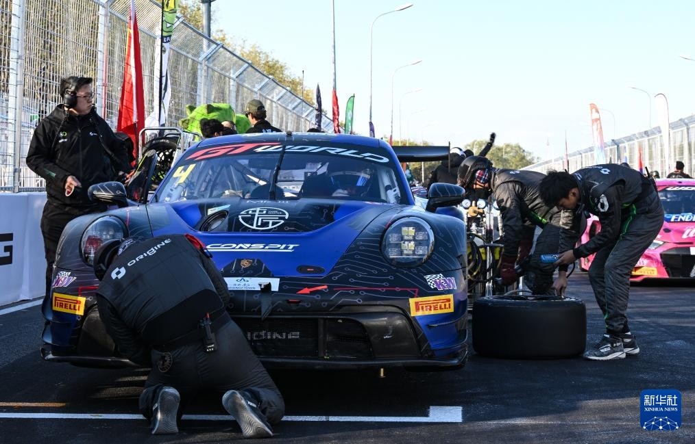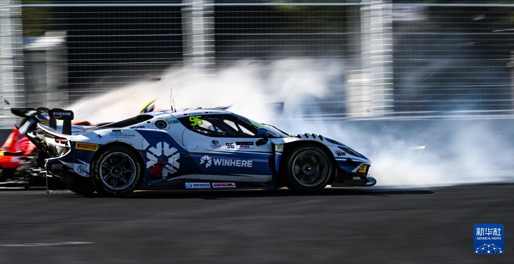 10月19日,Craft-Bamboo Racing車隊首發中國車手曹琦駕駛的賽車在比賽中被困在輪胎墻,等待救援。