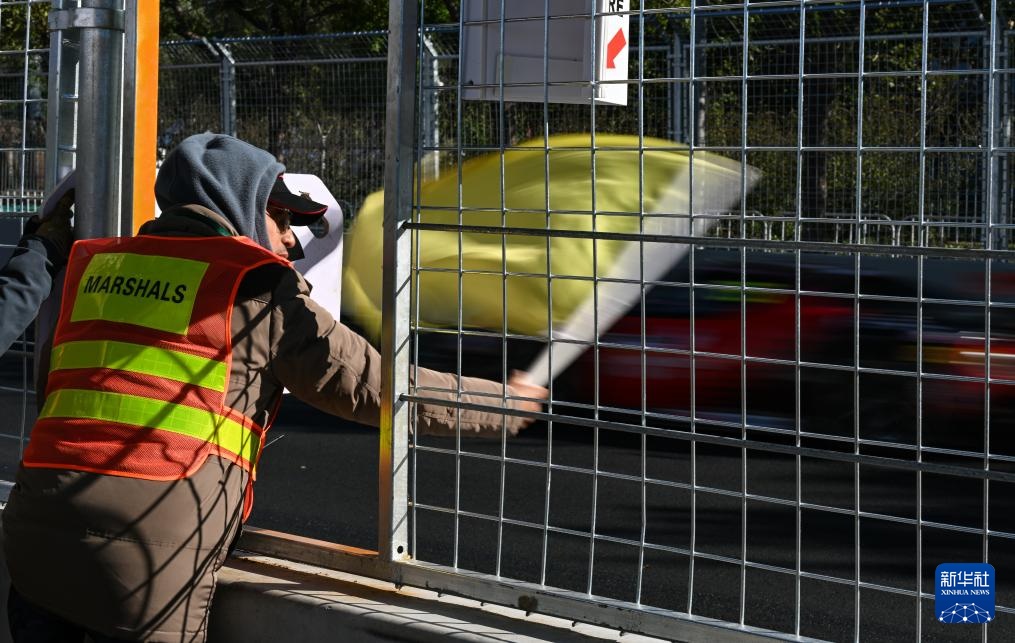 10月19日,工作人員在賽道發生事故后揮動黃旗示意。