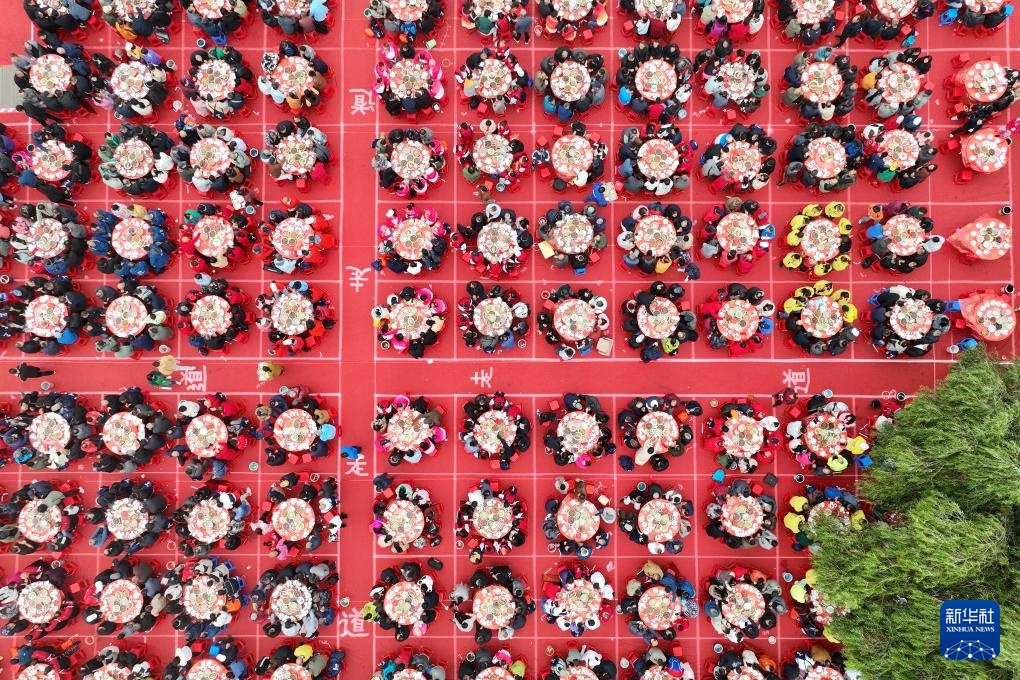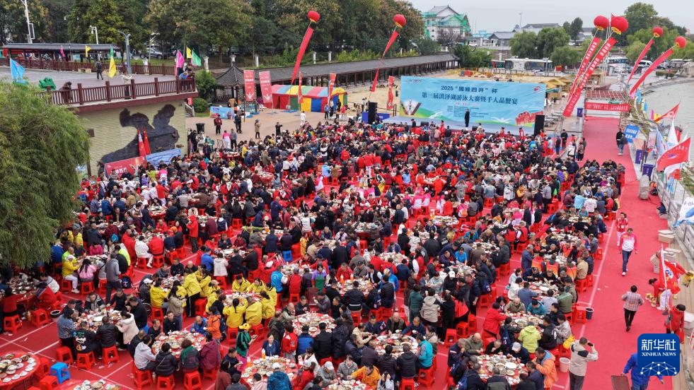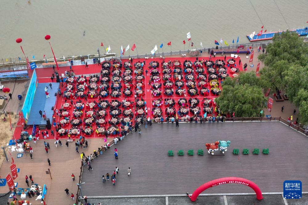 10月19日,人們在江蘇省淮安市洪澤區(qū)漁人灣浴場參加品蟹宴(無人機(jī)照片)。