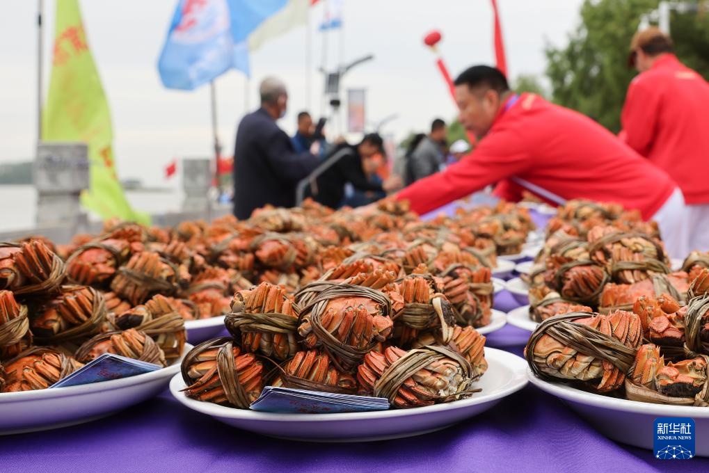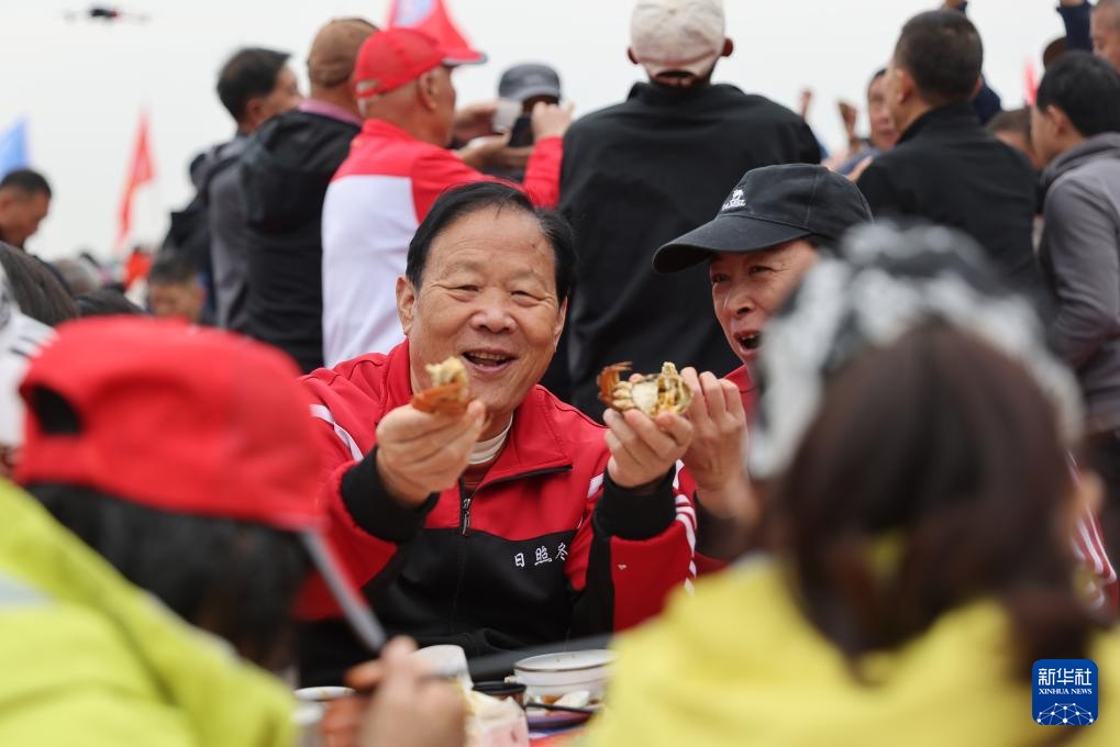 10月19日,人們在江蘇省淮安市洪澤區(qū)漁人灣浴場參加品蟹宴。