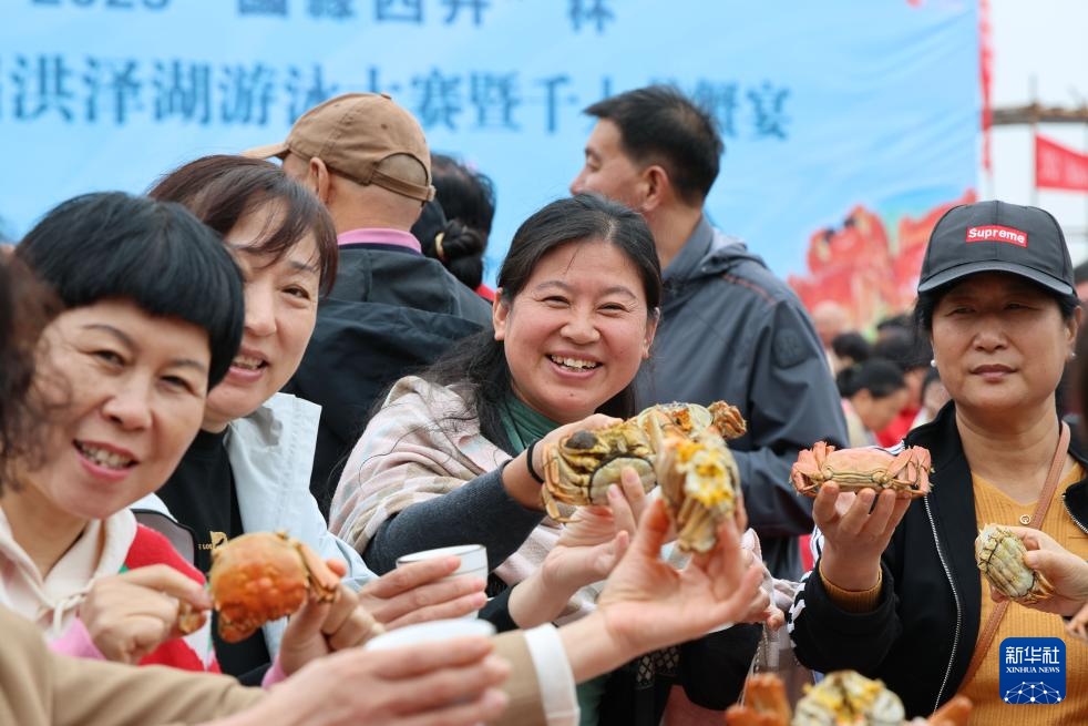 當(dāng)日,第三屆洪澤湖游泳大賽暨千人品蟹宴在江蘇省淮安市洪澤區(qū)洪澤湖漁人灣舉行,來自全國各地的46支隊(duì)伍、近千人參加了此次活動。
