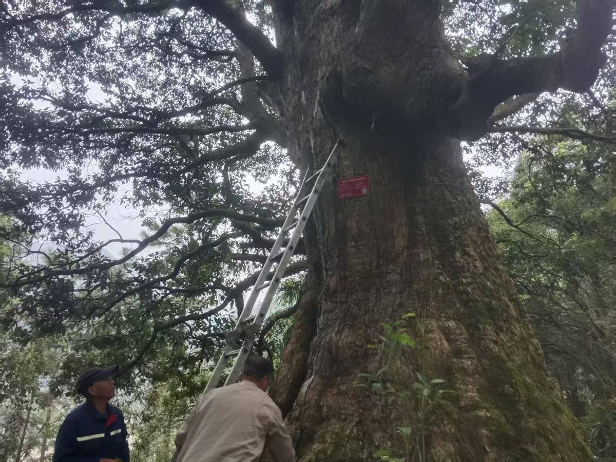 林業人員更換古樹保護牌。(受訪單位供圖)