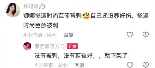 10月19日,針對“《時尚芭莎》刪除那藝娜相關宣傳物料”一事,網(wǎng)紅女歌手那藝娜(Lady Nana)回應:沒有被刺,是沒有剪輯好,就下架了。