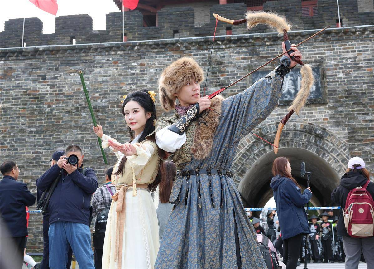 “郭靖”“黃蓉”與游客互動。(湖北日報通訊員楊東攝)