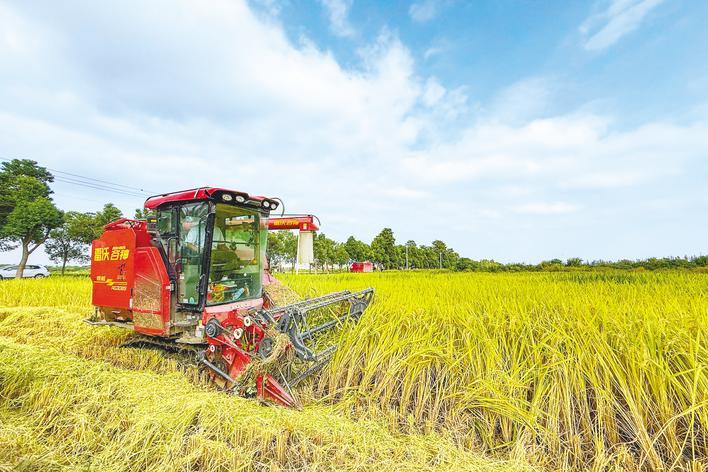 近日,武漢市東西湖區柏泉街1500畝糯稻喜獲豐收。據了解,柏泉農業技術開發有限公司通過“公司+農戶”種植模式,帶動周邊村民就業,為農業現代化注入新動能。(湖北日報全媒記者 倪娜 通訊員 徐卉婷 晏君 攝)