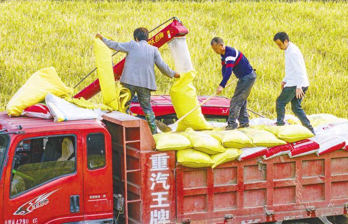 10月13日,竹山縣擂鼓鎮董家溝村150畝“旱改水”項目區內的富硒晚稻成熟,該村組織收割機械搶收稻谷。為避免“華西秋雨”影響收成,竹山縣投入56臺中小型糧食收割機,晝夜搶收秋糧,開放8個糧食烘干中心,確保收獲的糧食搶烘不過夜。