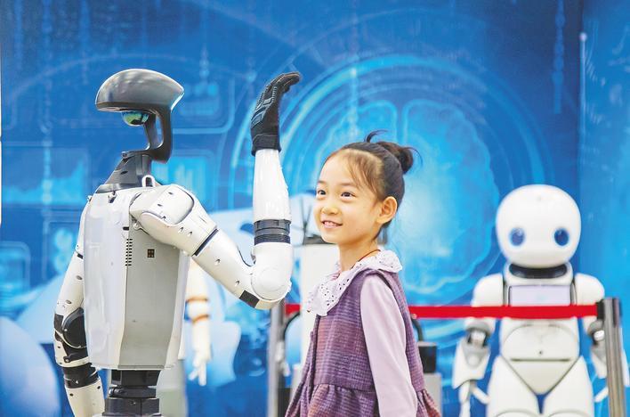 10月19日,在恩施市“世界硒都·硒博匯”展館,AI智能機器人精彩的舞蹈、廣播操、互動游戲等表演,吸引了許多家長帶著小朋友觀看,零距離感受人工智能的魅力。 (視界網(wǎng) 譚華 攝)