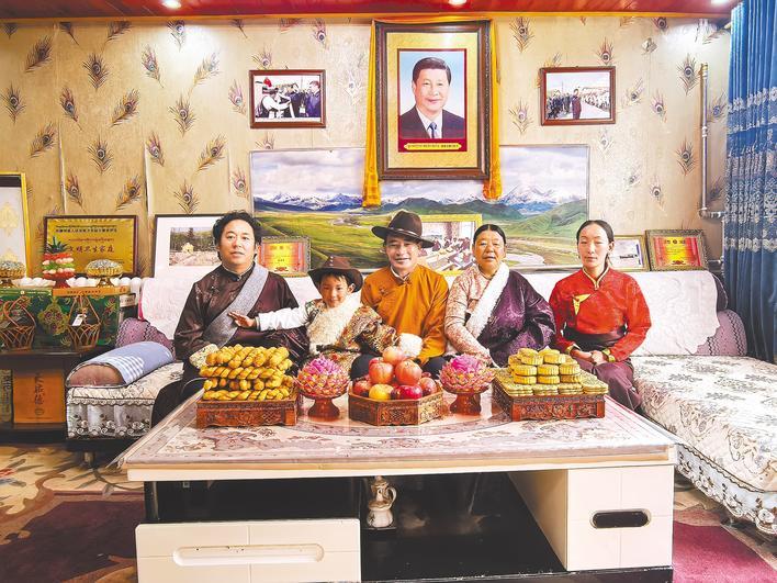 索南才讓的家庭幸福賬 索南才讓(中)一家人合影。 全家端起“生態飯碗”,人均年收入由2萬元增長到3萬多元。 以前騎馬放牧,后來騎摩托車巡護草場。2024年花7萬多元買了廂式小貨車。 家里開辦小商店賣旅游紀念品,一年能增加1000多元收入。 房屋翻新了,安裝了陽光房頂棚、太陽能熱水器,居住條件越來越好。