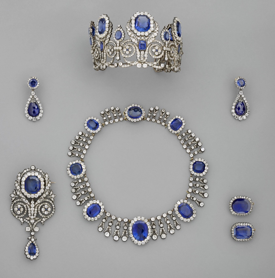 △瑪麗-阿梅莉王后與奧爾唐斯王后的冠冕、藍寶石項鏈及藍寶石耳環(資料圖)