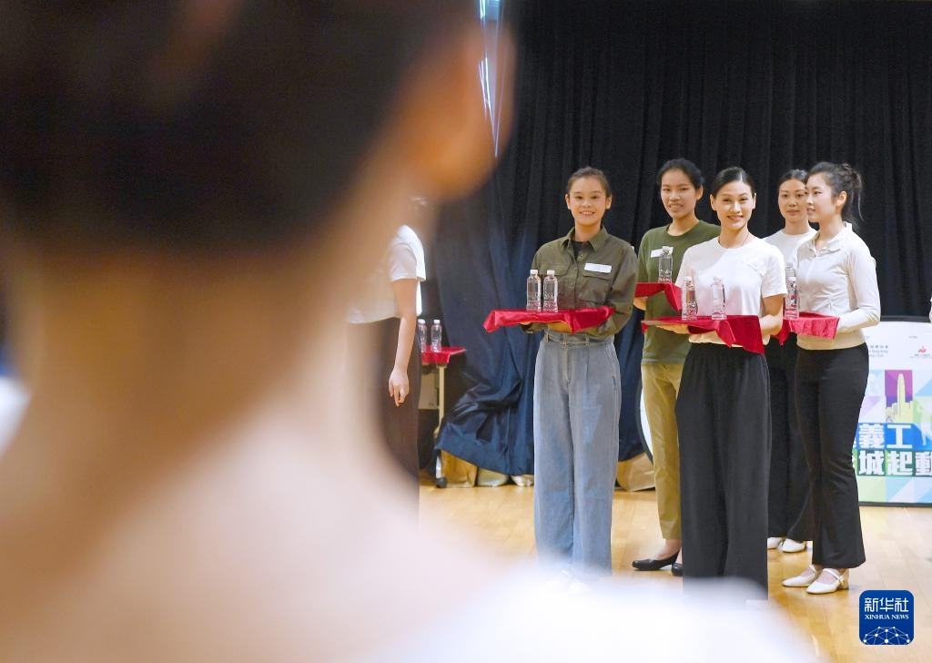 第十五屆全國運動會香港禮儀小姐義工培訓正在進行。經過層層選拔和培訓,超1.6萬名香港義工將在全運會上服務超過200場競賽項目及儀式。