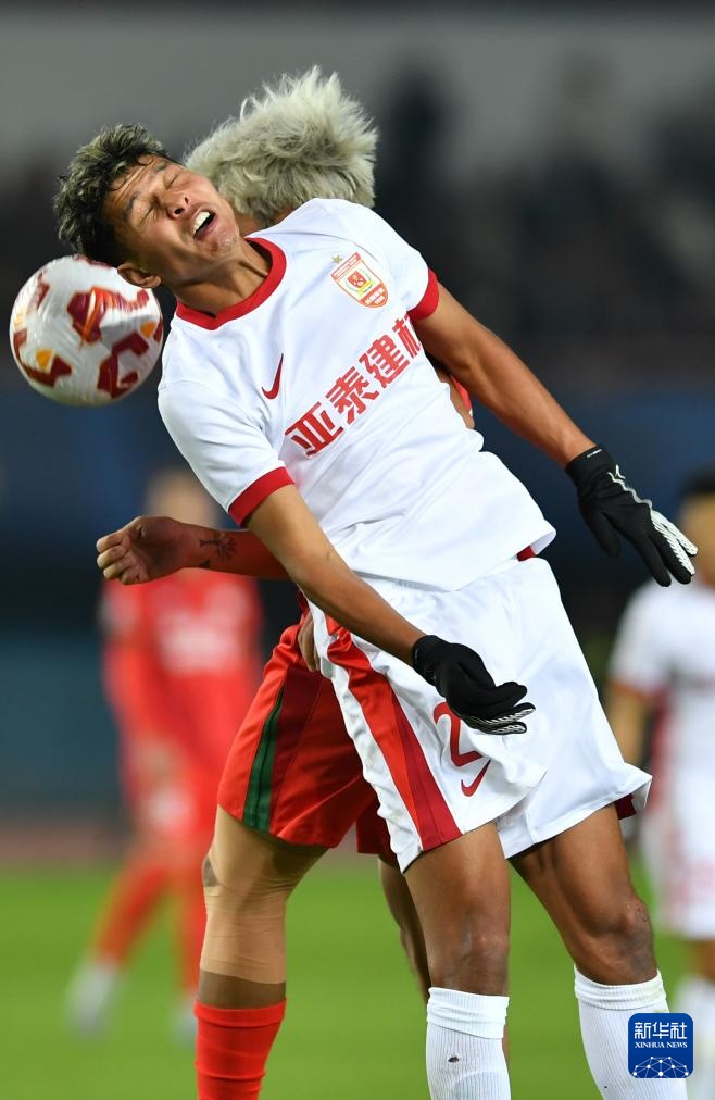 10月19日,長春亞泰隊球員阿不都海米提·阿不都格尼在比賽中爭頂。
