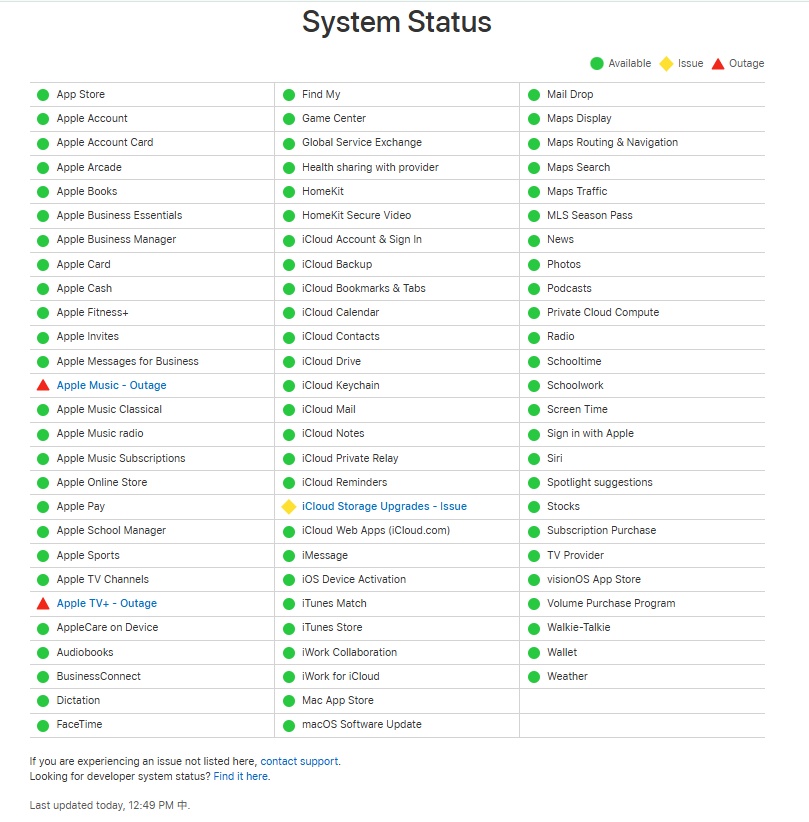 10月20日,蘋果公司在其系統狀態頁面上表示,正在調查導致部分用戶無法訪問Apple TV+和Apple Music的服務問題。