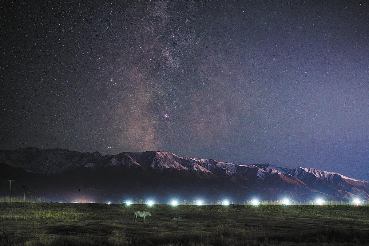 The Gaojia Lake Wetland in Barkol Kazak autonomous county, Xinjiang Uygur autonomous region, under the starry night on Sept 23. DAI JIANFENG/FOR CHINA DAILY