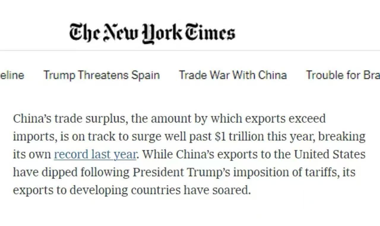 美國《紐約時報》的文章分析稱,強勁的出口和對新工廠的持續投資使中國經濟在夏季保持穩定增長。中國的出口投資以及用國產商品取代進口的政策繼續推動著經濟增長。與去年同期相比,商品貿易順差在過去三個月中增加了12.4%。中國的貿易順差今年有望超過1萬億美元,主要得益于中國對發展中國家的出口激增。