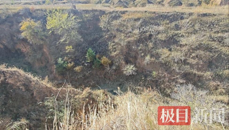 10月18日,極目新聞記者來到丁一被找到的山溝處。溝深大約十幾米,兩邊地勢陡峭,四周布滿雜草,山溝兩邊的高地上曾有村民在此種植玉米、谷子等作物。已到收獲季節,部分作物已被收割,土地里只剩空蕩蕩的半截秸稈。丁一被發現的位置位于山溝最低處,當地村民告訴極目新聞記者,每當夏季降水時,山溝常有蓄水,冬季便干涸,此處鮮有人來,幾乎沒人到過溝底。
