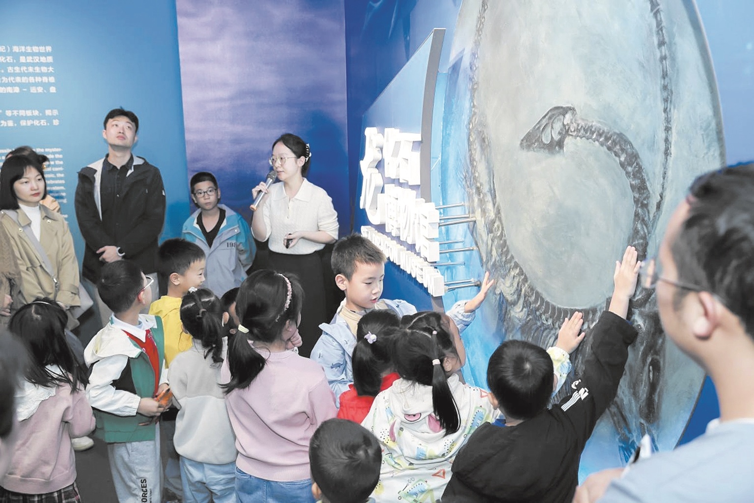 “以前只在書上看到過陸地上的恐龍,今天親眼看到了這么多海底的魚龍,真的太震撼了。”在中國地質調查局武漢地質調查中心海龍化石博物館,水果湖一小四年級學生趙鵬皓一邊聆聽講解員的介紹,一邊觀察著各種化石,忍不住發出驚嘆。