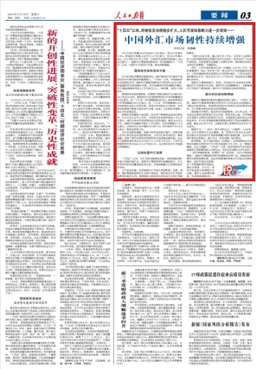 “十四五”以來,外匯市場功能更加完備,市場深度拓展。中國人民銀行副行長、國家外匯管理局局長朱鶴新表示,外匯市場有足夠的容量承接各類交易,為高效配置外匯資源創造良好條件。