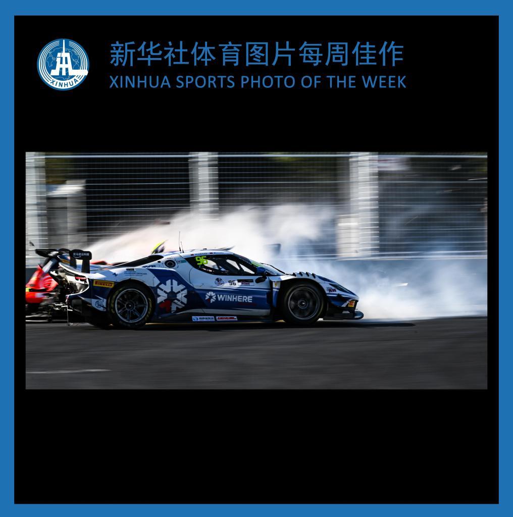 10月19日,勝地-和諧車隊首發中國車手鄧億(前)在比賽中與魅影環球車隊首發中國車手劉旭發生碰撞。當日,GT世界挑戰賽亞洲系列賽第一階段正賽在北京亦莊通明湖區域舉行。