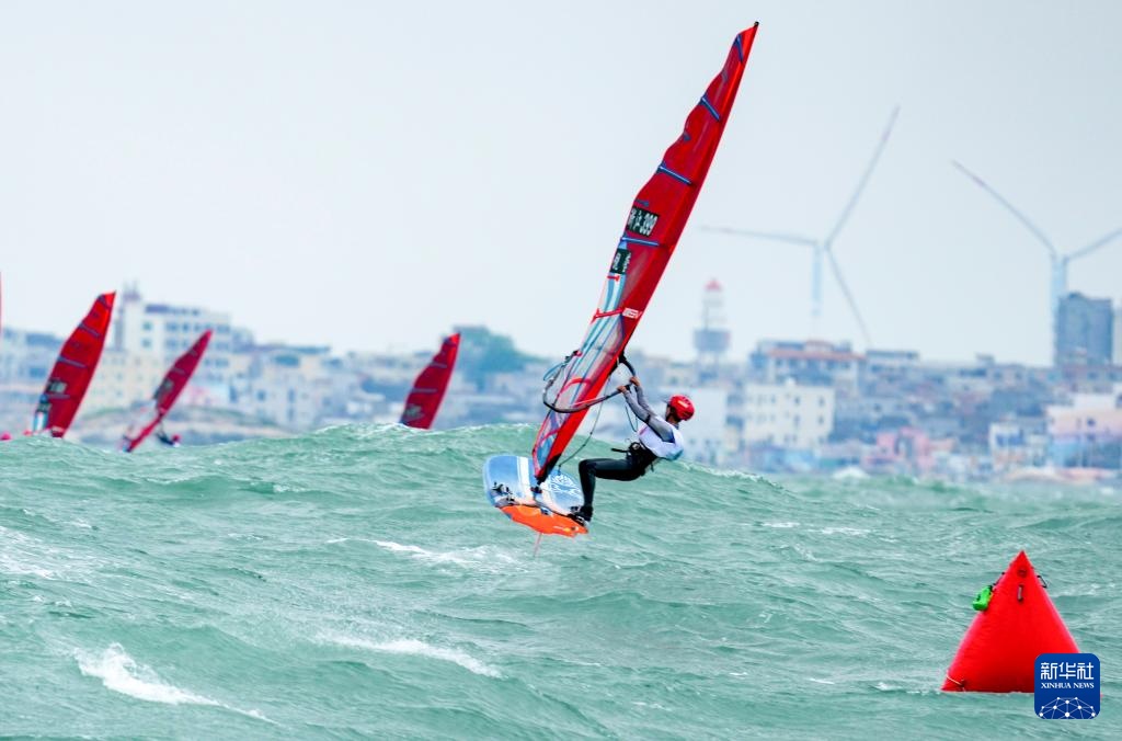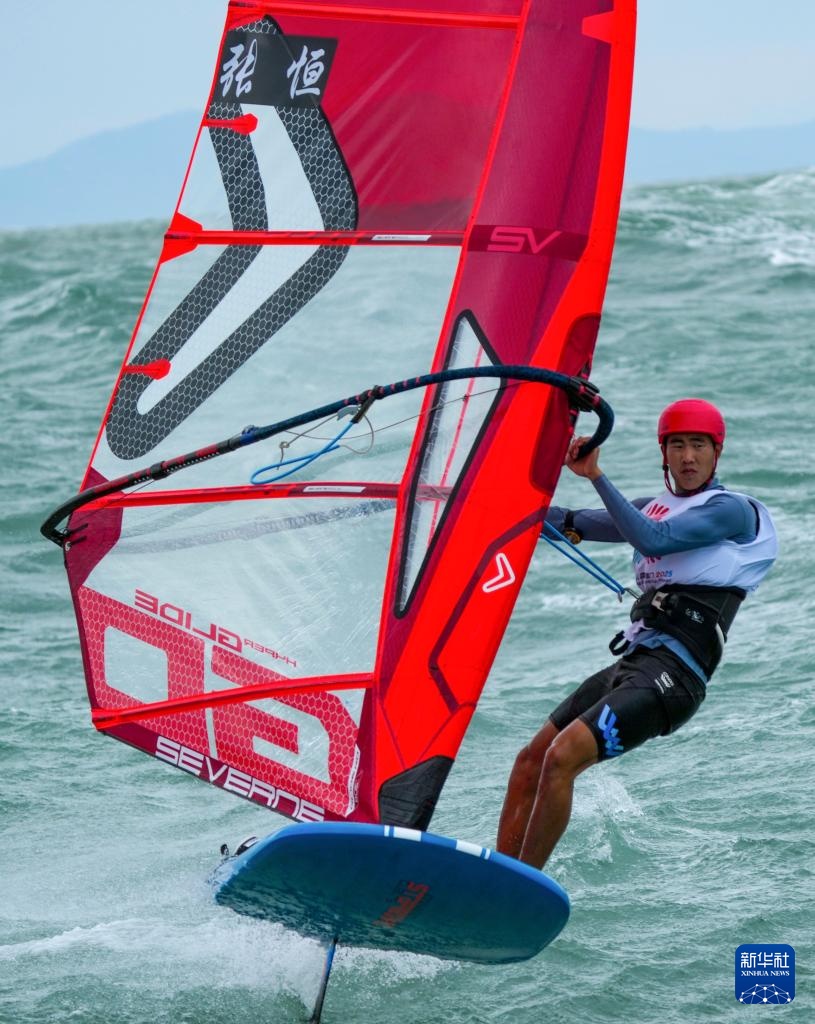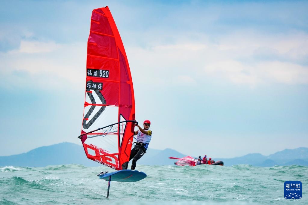 10月20日,福建隊選手楊敏海在男子水翼帆板級比賽中。