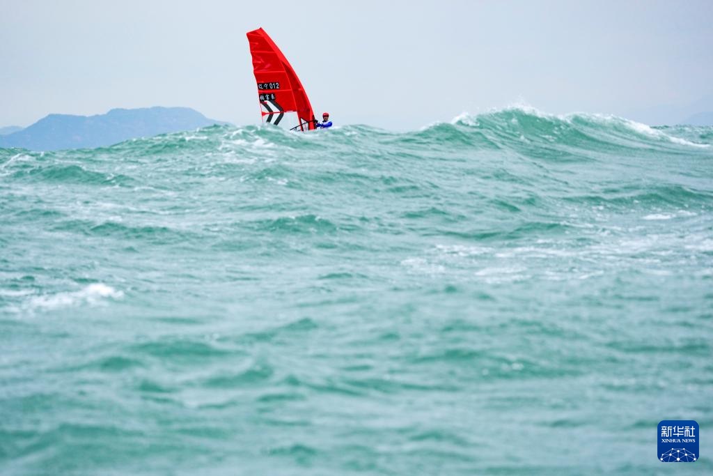 10月20日,浙江隊選手饒瑩在女子水翼帆板級比賽中。