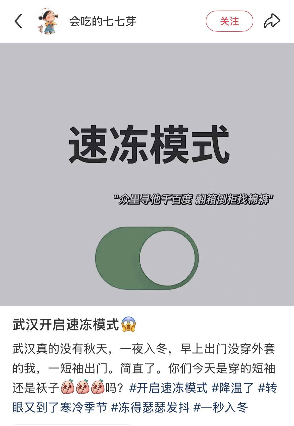昨天,武漢最低溫度9℃,不少到武漢來(lái)旅游的朋友在小紅書(shū)開(kāi)啟“吐槽”模式:“已冷懵!”“武漢的春秋是留在戰(zhàn)國(guó)了嗎?”“這是開(kāi)啟了速凍模式嗎?”