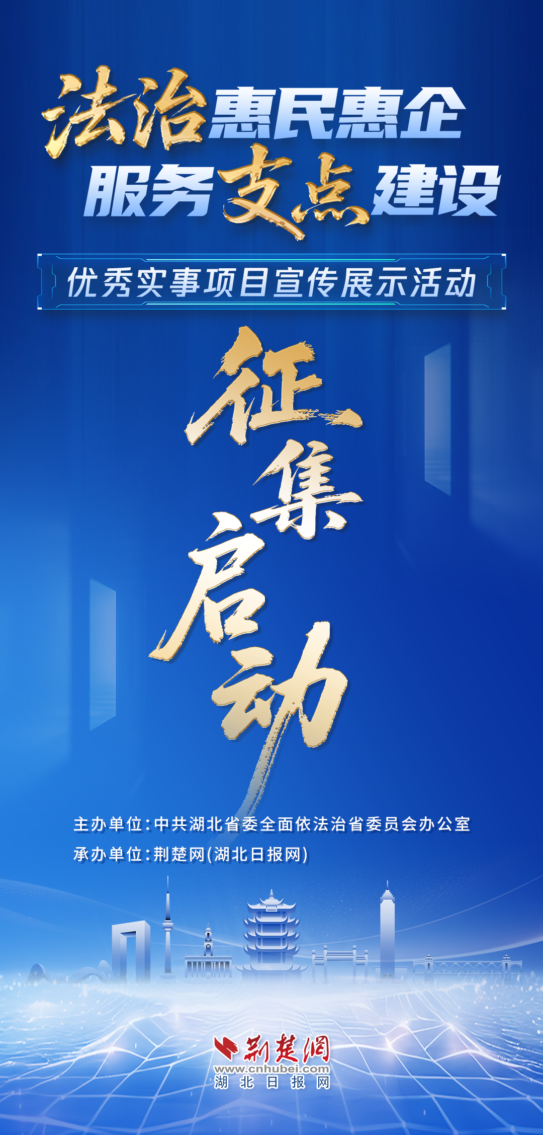 荊楚網(湖北日報網)訊(記者肖慧婷 通訊員王相生)近日,記者從湖北省委全面依法治省委員會辦公室獲悉,為深入推進法治惠民惠企辦實事工作,服務和保障支點建設,省委依法治省辦在全省開展“法治惠民惠企 服務支點建設”優秀實事項目宣傳展示活動。