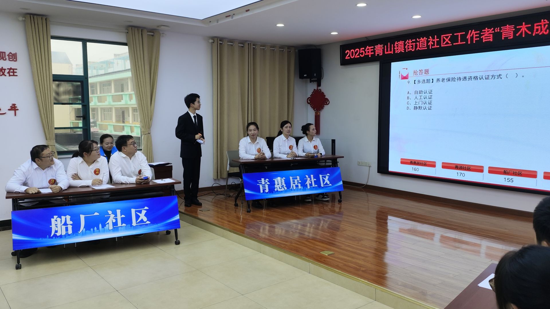 “此次技能比拼活動(dòng),既是對(duì)社區(qū)工作者能力的全面體檢,也是一次相互學(xué)習(xí)、共同進(jìn)步的交流平臺(tái),進(jìn)一步強(qiáng)化了社區(qū)工作者主動(dòng)學(xué)習(xí)、鉆研業(yè)務(wù)的積極性,為更好地開展社區(qū)服務(wù)奠定了堅(jiān)實(shí)的理論基礎(chǔ)”。青山鎮(zhèn)街道辦事處主任馮婷表示,今年是干部素質(zhì)提升年,通過技能大賽的比拼形式,找差距、補(bǔ)短板、提能力、優(yōu)服務(wù),進(jìn)一步提升社工隊(duì)伍的專業(yè)技能與綜合素質(zhì),打造一支專業(yè)、高效、富有創(chuàng)新精神的高素質(zhì)人才隊(duì)伍,為居民提供更加優(yōu)質(zhì)的服務(wù)。