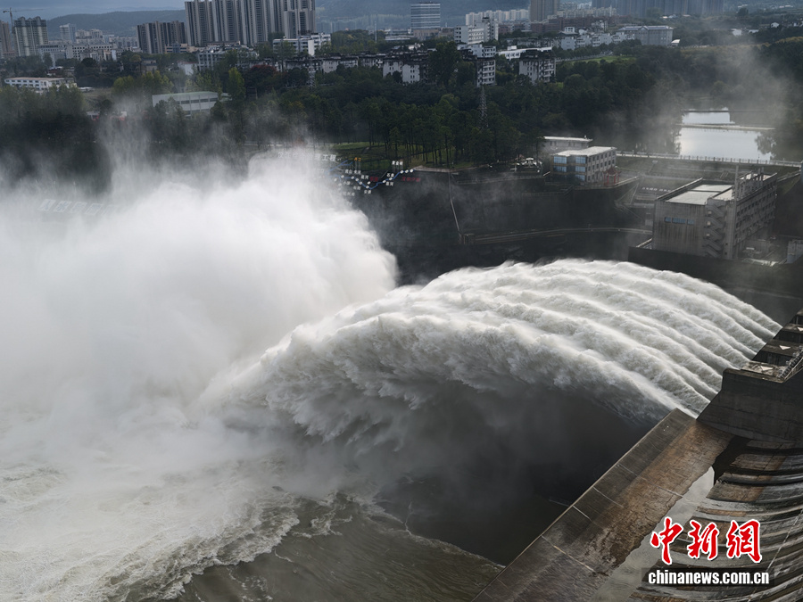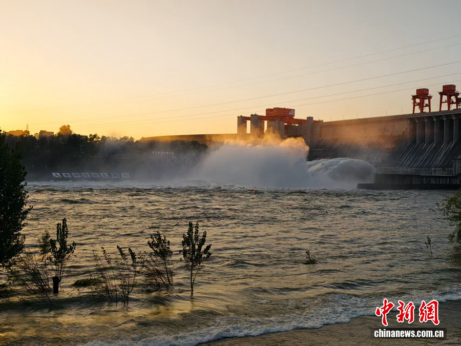 10月15日,丹江口水庫開閘泄洪。中新網記者 任思雨 攝