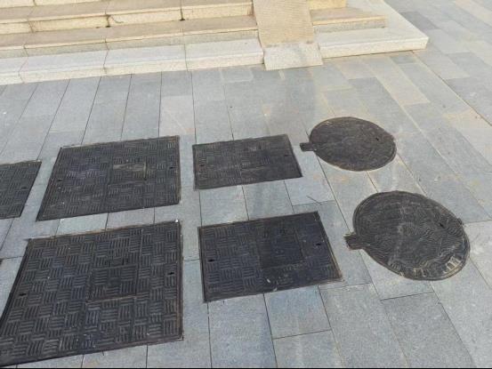 原有的鑄鐵井蓋,黑黢黢的顏色