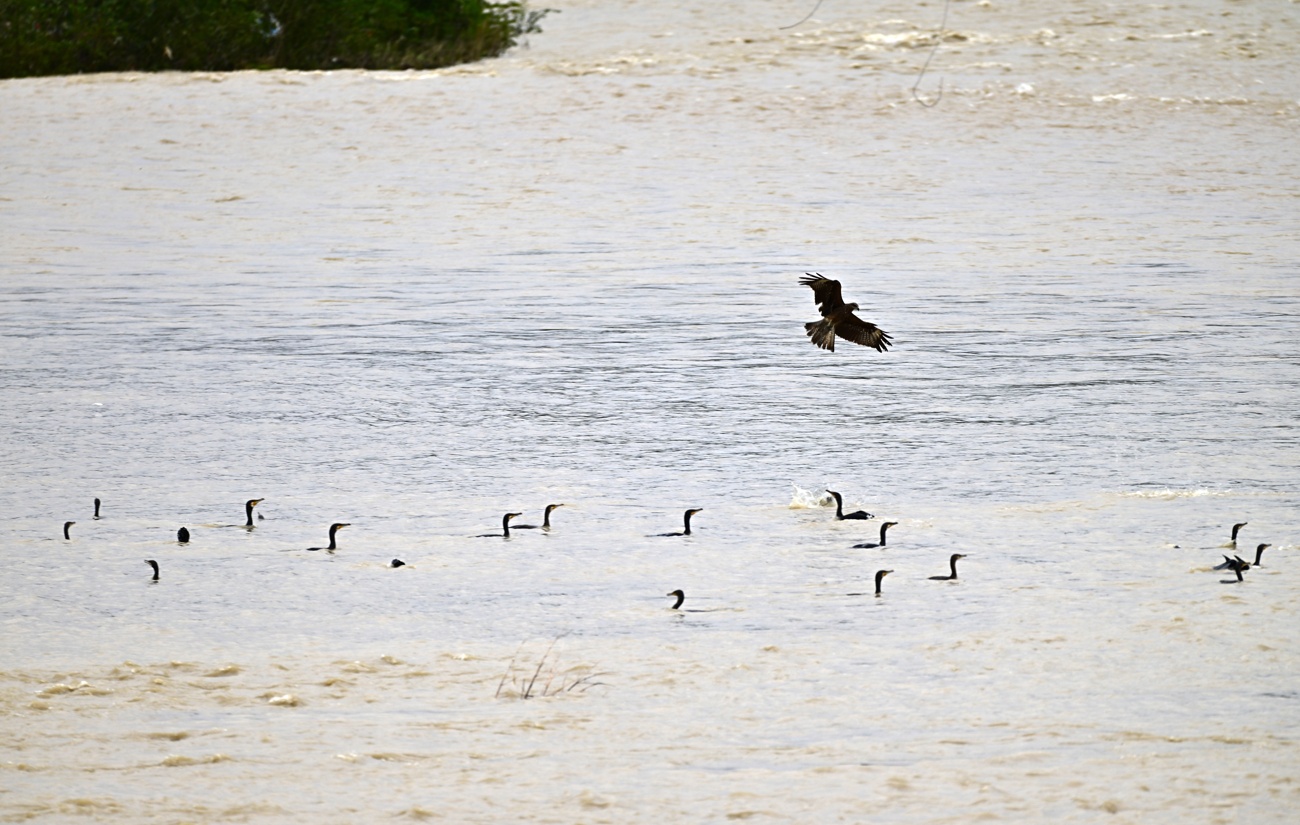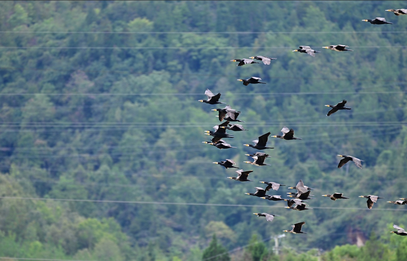 近來,神農架觀鳥協會成員在松柏鎮與陽日鎮南河流域觀測點記錄到黑鳶、游隼等猛禽100余只,普通鸕鶿60余只,以及灰頭麥雞約80只。現場觀測顯示,普通鸕鶿集群在水面捕魚,場面壯觀;黑鳶不時從高空俯沖,捕食普通鸕鶿,展現出食物鏈中激烈的生存競爭;游隼則在林緣上空高速飛行,追捕小型鳥類。此外,成群的灰頭麥雞在空中盤旋,時而追逐蒼鷺等大型水鳥,構成了一幅動態而完整的生態圖景。