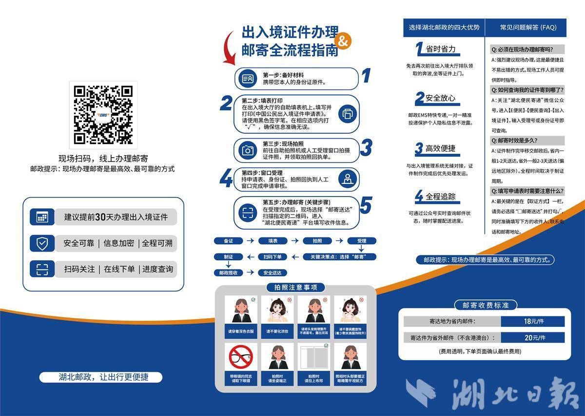 自2013年警郵合作啟動以來,湖北郵政持續在全省提供出入境證件郵政專遞服務,實現護照、港澳臺通行證等材料的直郵到家,助力群眾“只跑一次”。截至目前,湖北郵政已累計服務出入境證件郵寄超705萬人次。
