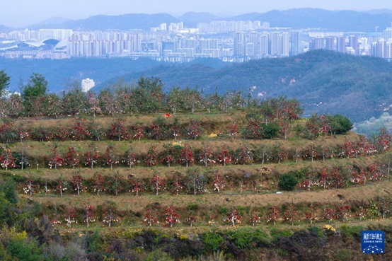 延安市寶塔區(qū)橋溝街道煙洞溝村蘋果園景色。圖源:新華社