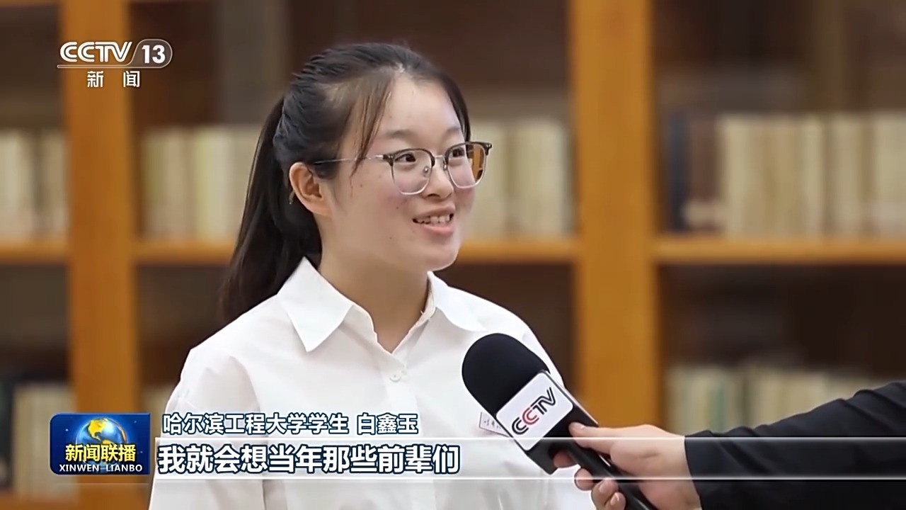 哈爾濱工程大學(xué)學(xué)生 白鑫玉:我們上課鈴下課鈴是軍號,有時候坐在教學(xué)樓里的時候,我就會想當(dāng)年那些前輩們是不是也像我一樣這么學(xué)習(xí)。這個時候我就想,我要是再努力一點(diǎn),就能再靠近他們一點(diǎn)。