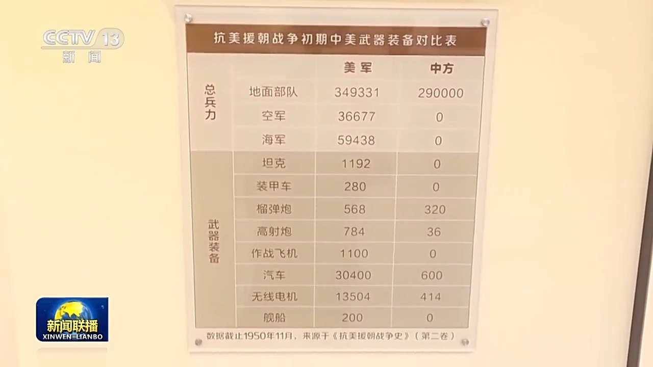 軍號響起,使命召喚。在哈軍工紀(jì)念館,這張抗美援朝戰(zhàn)爭初期中美武器裝備對比圖,震撼著世人。中方空軍0、海軍0、坦克0、裝甲車0、作戰(zhàn)飛機(jī)0、艦船0……如此懸殊的裝備下,中國人民志愿軍浴血奮戰(zhàn),頑強(qiáng)戰(zhàn)勝強(qiáng)敵。