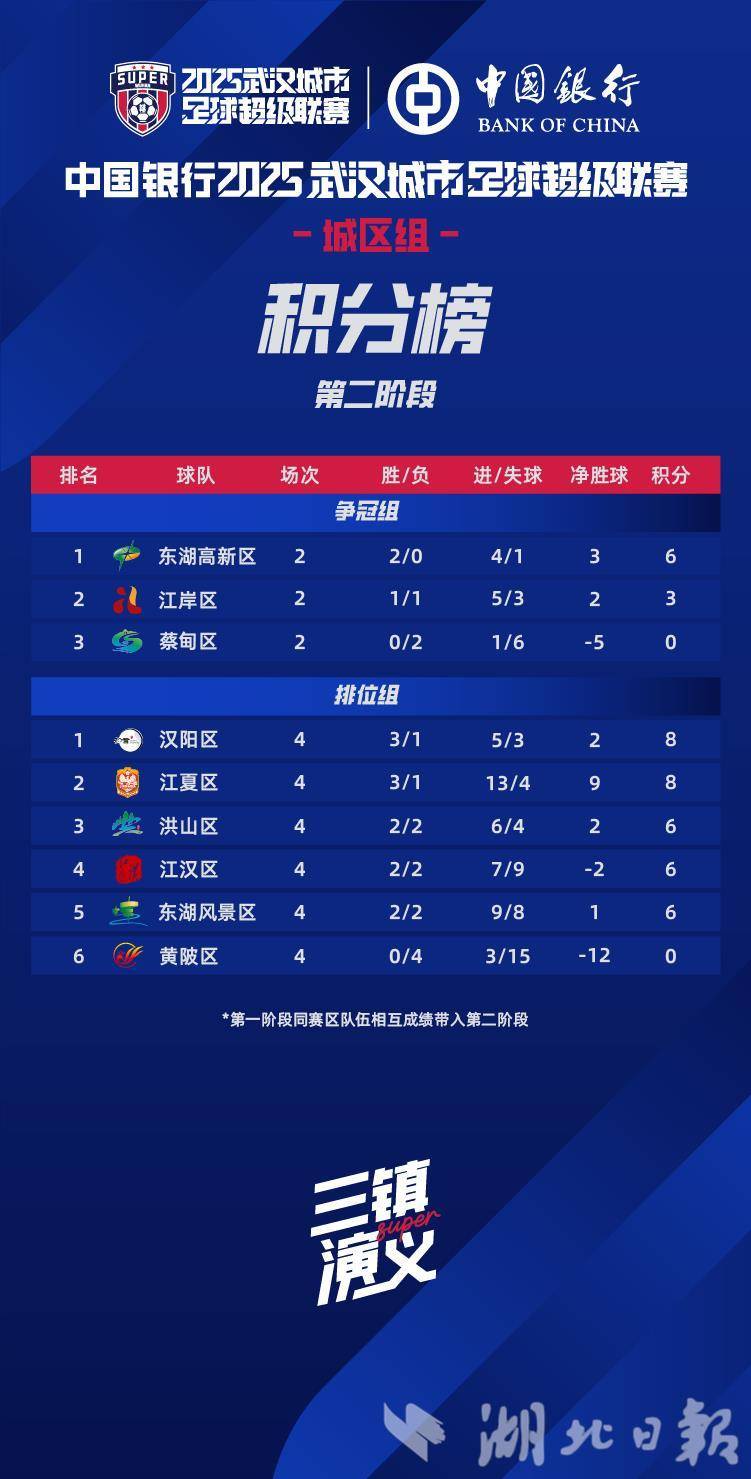 漢陽區隊與江夏區隊的表現也值得關注。在排位組中,漢陽區隊與江夏區隊同積8分,但漢陽區隊憑借勝負關系優勢,名列榜首。本周日,漢陽區隊對陣積分墊底的黃陂區隊,勝算較大;江夏區隊與東湖風景區隊也將進行激戰,如有失手,在積分榜上的差距將被拉開。