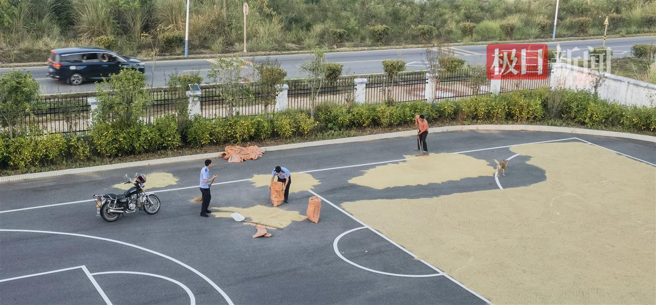 10月21日,極目新聞?dòng)浾呗?lián)系杰村派出所,民警劉明告訴記者,派出所院子里的大坪平整寬敞,大概兩個(gè)籃球場(chǎng)那么大,去年就有村民來曬稻谷。