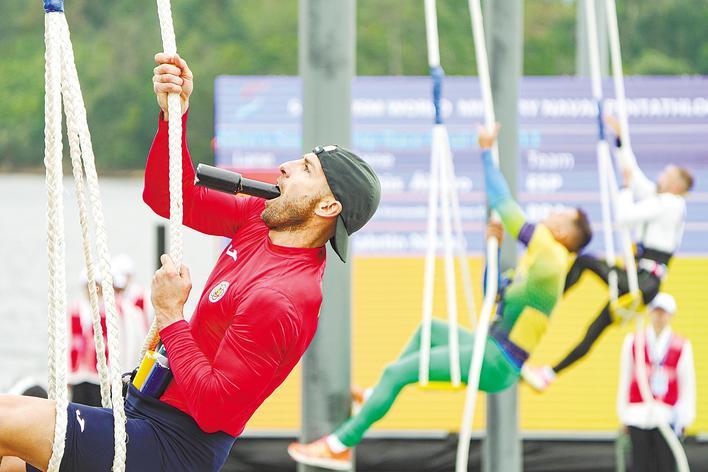 10月20日至21日,國際軍體第54屆海軍五項世界錦標(biāo)賽在武漢展開激戰(zhàn),中外選手在實用游泳、航海技術(shù)比賽中奮力比拼。(湖北日報全媒記者 任勇 王際凱 通訊員 張佳豪 劉鐵錚 實習(xí)生 王迅馳 攝)